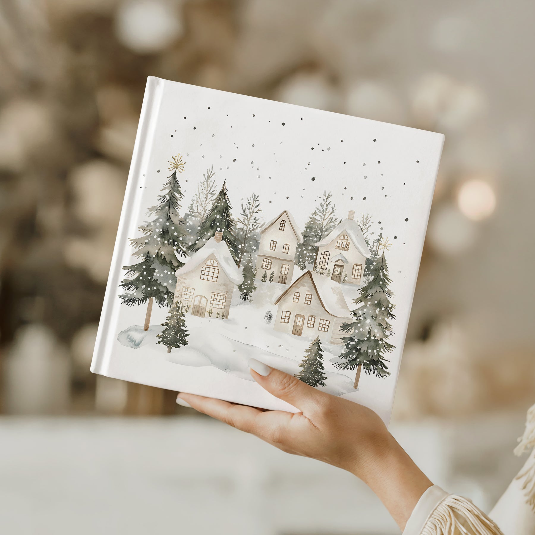 Pentru a aduce o notă personală și unică acestui produs, oferim opțiunea de a alege la începutul albumului hârtie semitransparentă personalizată cu text la alegere, contra unui cost suplimentar. Astfel, poți adăuga cu ușurință un mesaj special, o dedicatie sau un citat care să completeze perfect amintirile tale de Crăciun.