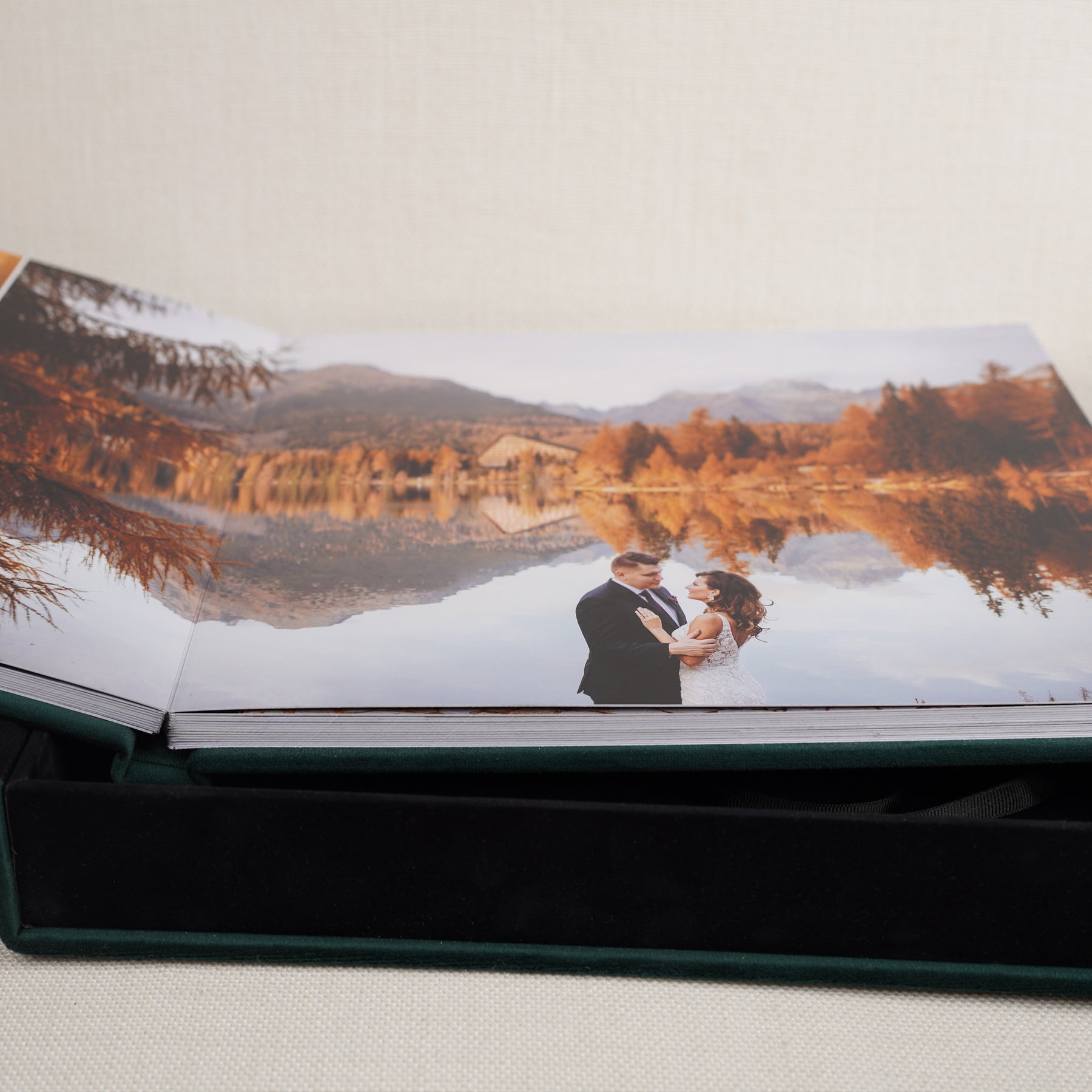 Paginile layflat se deschid perfect, oferind o experiență panoramică, ideală pentru fotografiile de nuntă, logodnă sau ședințe foto în natură.